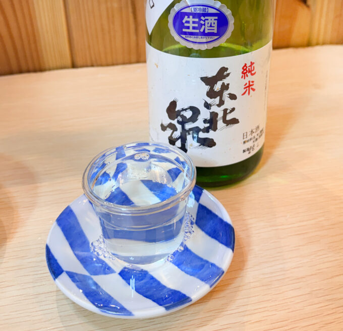 早速の2杯目は、山形・高橋酒造店の「東北泉 雄町純米辛口 生酒」。