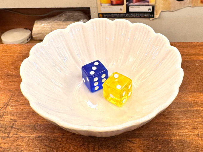 せんべろセット注文すると、サイコロを3つもらえるので、それを好きなお酒と交換するシステム。最大3杯楽しめます。