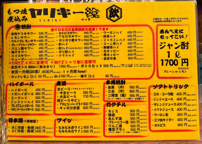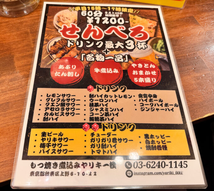 上野・御徒町の人気もつ焼き居酒屋「ヤリキ 一揆」で、せんべろセットを楽しむ