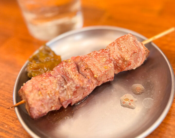 上野・御徒町で、鮮度よしのもつ焼きや肉刺しで一杯できる、大衆酒場「ヤリキ 一揆」。