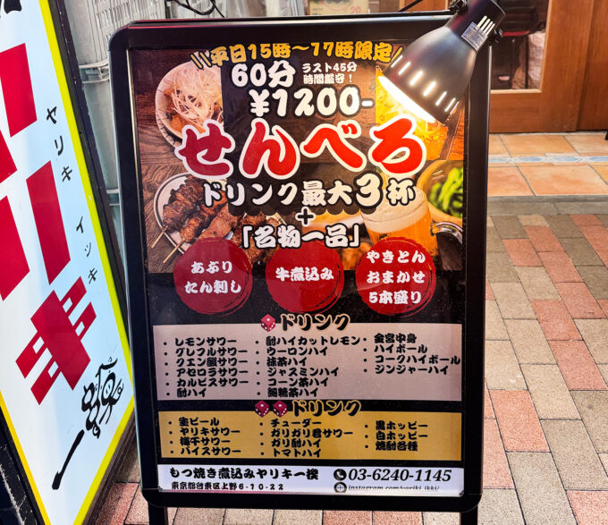 今回は、そんな上野・御徒町界隈でおなじみの“あのもつ焼き居酒屋”でせんべろセットが楽しめると聞き、立ち寄ってみることに!