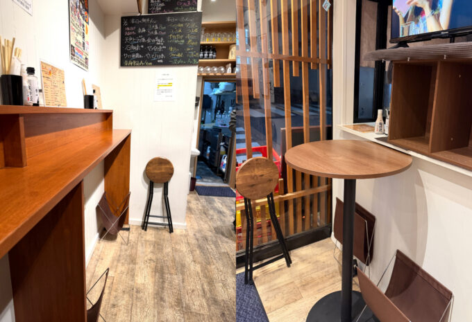 店内には立ち飲みカウンターとテーブルが2つあり、10名ほどが利用できそうな広さ。