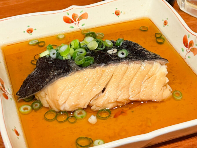 皮目の香ばしさと、肉厚でとろける食感の身。旨みがじわっと広がっていく。