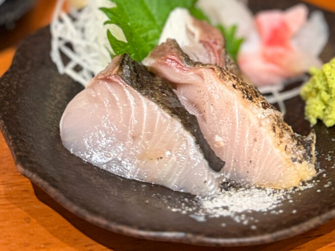 本日の鮮魚メニューを眺めていたら、「サワラ焼き霜造り」を発見。