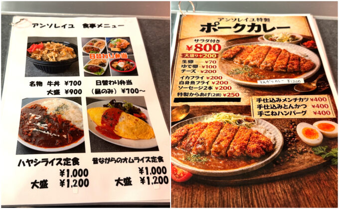 アンソレイユは、店主のお姉さんがお一人で切り盛りされているお店。フランス料理やイタリア料理の修行をされていた方で、メニューは洋食を中心に提供されています。