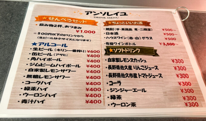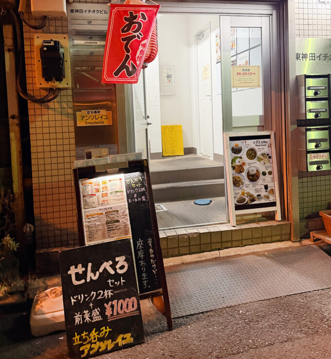 馬喰町の洋食の立ち飲み居酒屋「アンソレイユ」でせんべろセットを楽しむ