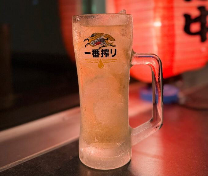 生ビール(キリン一番搾り)や缶ビール(アサヒ)、ハイボール(角ハイ、ビームハイ)、自家製レモンサワー、お茶割り、芋麦焼酎、日本酒からワインまで。