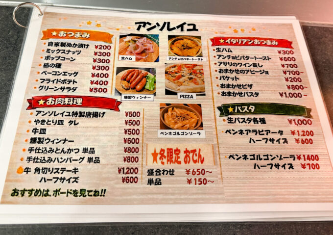 「立ち呑み アンソレイユ」のシステム・メニュー