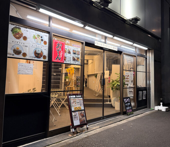 店内はフードコート形式になっていて、今回お目当ての「立ち呑み アンソレイユ」と「タイ料理店」が並んでいます。