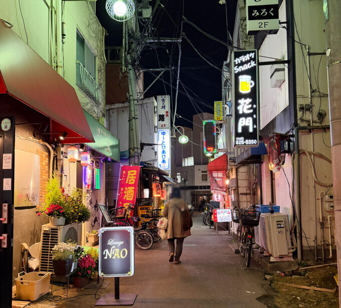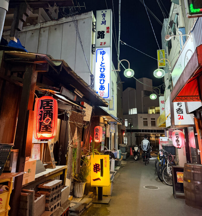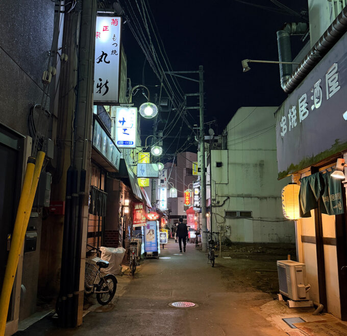 細い路地に看板と提灯が灯り、どこからともなく笑い声が漏れてくる。