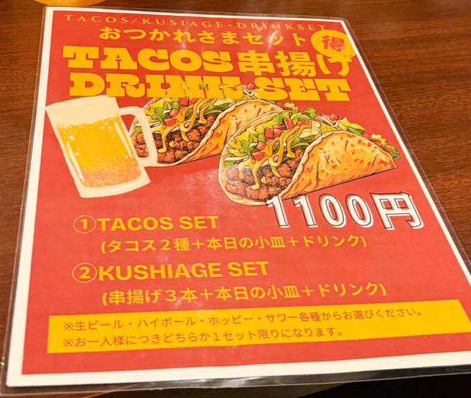 タコス立ち飲みのおつかれさまセットで一杯