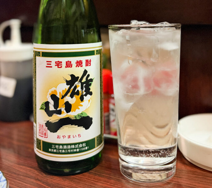 せっかくだから三宅島の麦焼酎「雄山一」も飲んでみたい。ということで、ソーダ割りを注文。